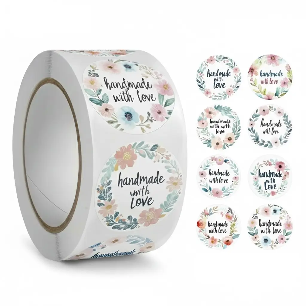 Lipdukai „handmade with love” gelėti, 500 vnt