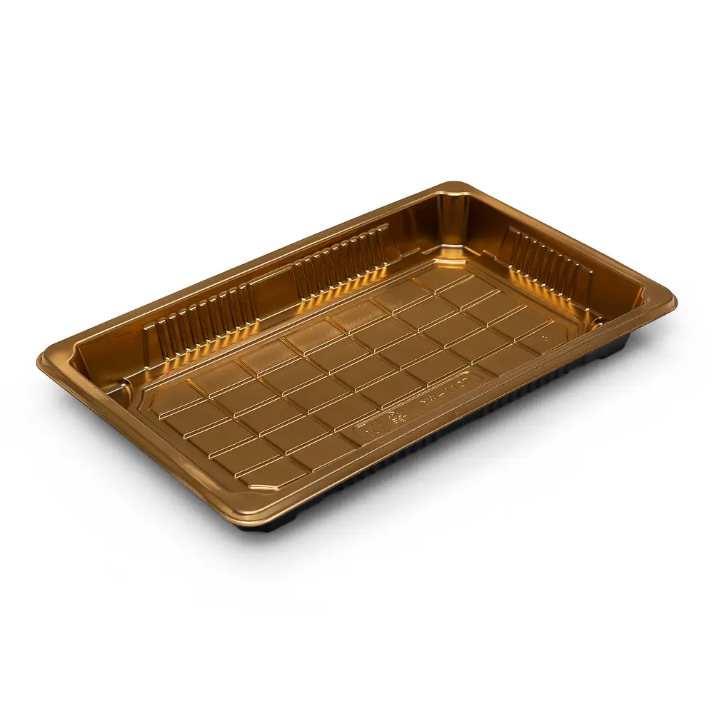 Suši dėžutė su dangteliu 221x138x23 mm, auksinė/juoda, PET